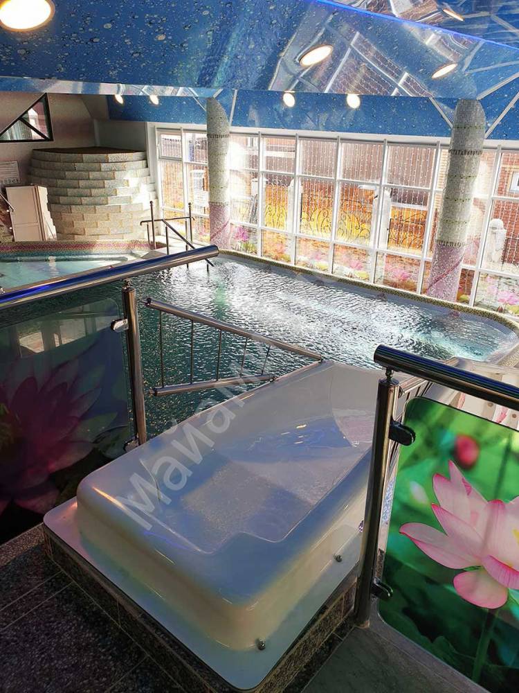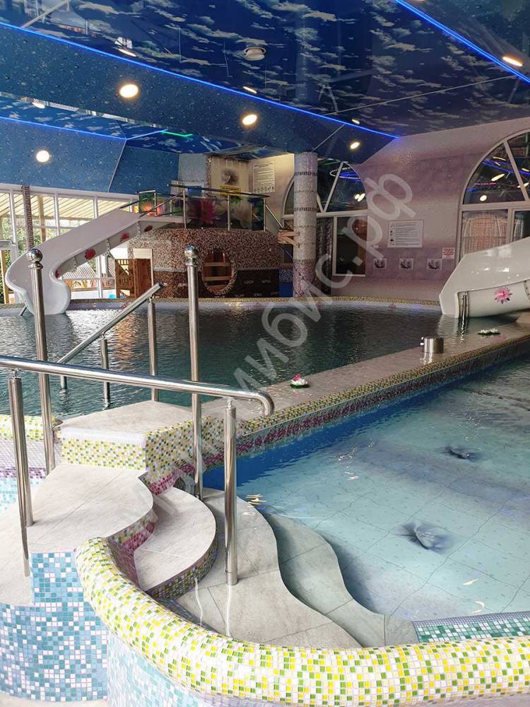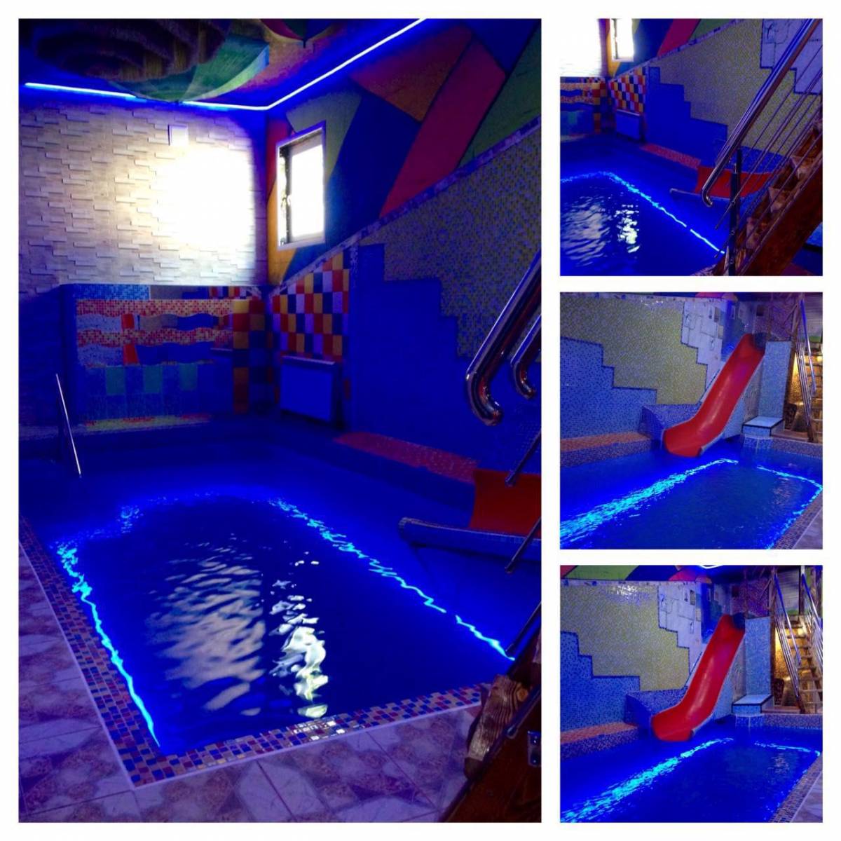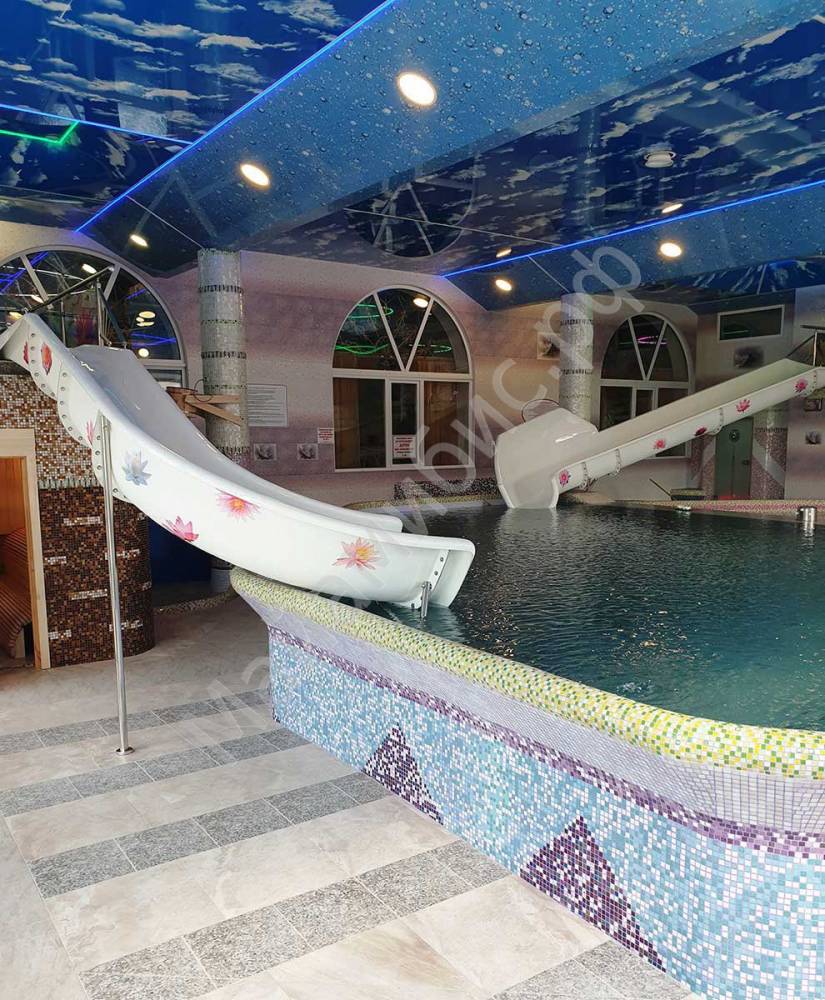 Бассейн, Размеры (Ш x Д x Г), м: 3 x 7 x 1.45, Теплый бассейн, Горки, Подсветка,