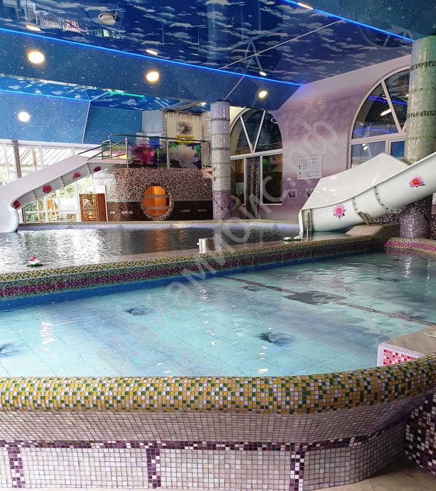 Бассейн, Размеры (Ш x Д x Г), м: 10 x 20 x , Горки, Гейзер, Подсветка,